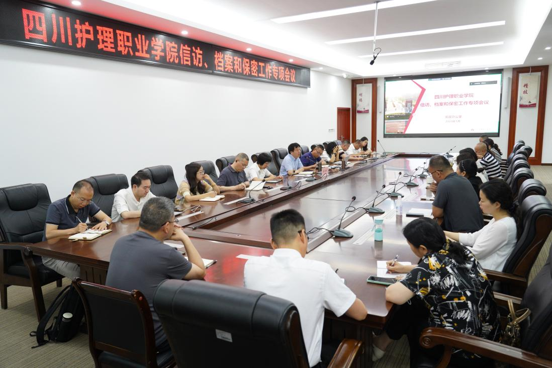 为认真贯彻落实习近平总书记关于加强和改进人民信访工作的重要思想和关于做好新时代档案工作、保密工作重要批示精神,全面贯彻落实省委、省政府部署要求,5月23日上午,学院信访、保密和档案专项工作会议在成都校区召开。学院党委副书记彭博文出席会议并讲话,党政办副主任徐飞主持会议。