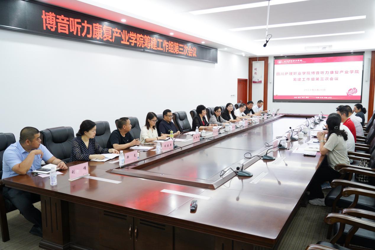 为加快博音听力康复产业学院建设进度,推动产业学院高质量发展,6月28日,博音听力康复产业学院筹建工作组第三次会议在成都校区召开。学院院长张先庚,党委副书记、纪委书记罗小强,学院附属医院党委书记冯梅,博音听力技术(上海)有限公司董事长江显全,副总经理毛杰荣,特聘专家孟晓星等出席,各相关部门负责人参会。会议由学院副院长梁小利主持。