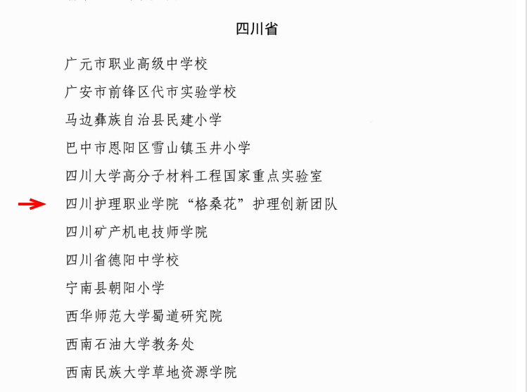 为大力弘扬教育家精神,营造全社会尊师重教浓厚氛围,激励全国广大教师和教育工作者落实立德树人根本任务,近日,人力资源社会保障部、教育部对2024年全国教育系统先进集体和先进个人进行了表彰。学院“格桑花”护理创新团队被授予“全国教育系统先进集体”称号。