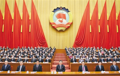 汪洋代表政协第十三届全国委员会常务委员会,向大会报告工作。