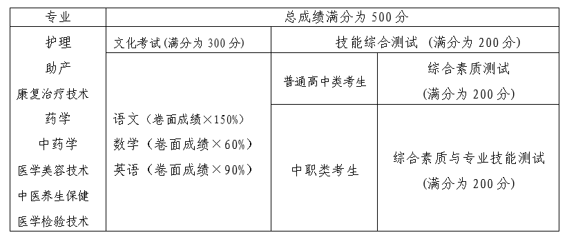 2.中职类考生:文化考试+综合素质测试+专业技能测试。