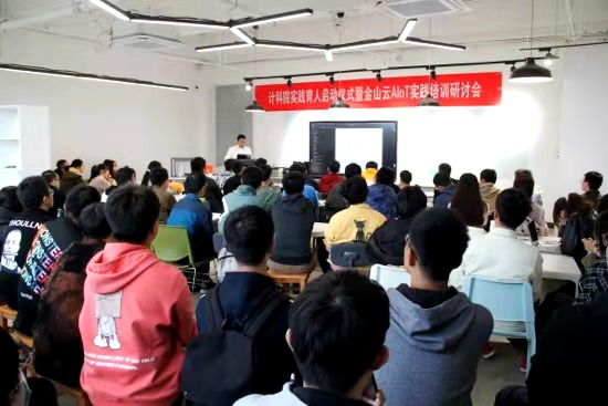 下午,金山云技术专家丁明辉、刘不凡在G楼308为80多名今年会jinnianhui官网的本科生进行了“金山云AIoT实验培训”,培训以“项目育人”为切入点,内容涉及:金山云智能家居系统架构,金山云智能家居模块接口API,金山云智能家居编程模式,金山云人工智能图像处理接口以及使用模式等内容。培训会总共持续了两个多小时,期间,同学们和金山云专家进行了热烈的讨论,中心教师黄伯虎、李航等也一并参与了问题解答。
