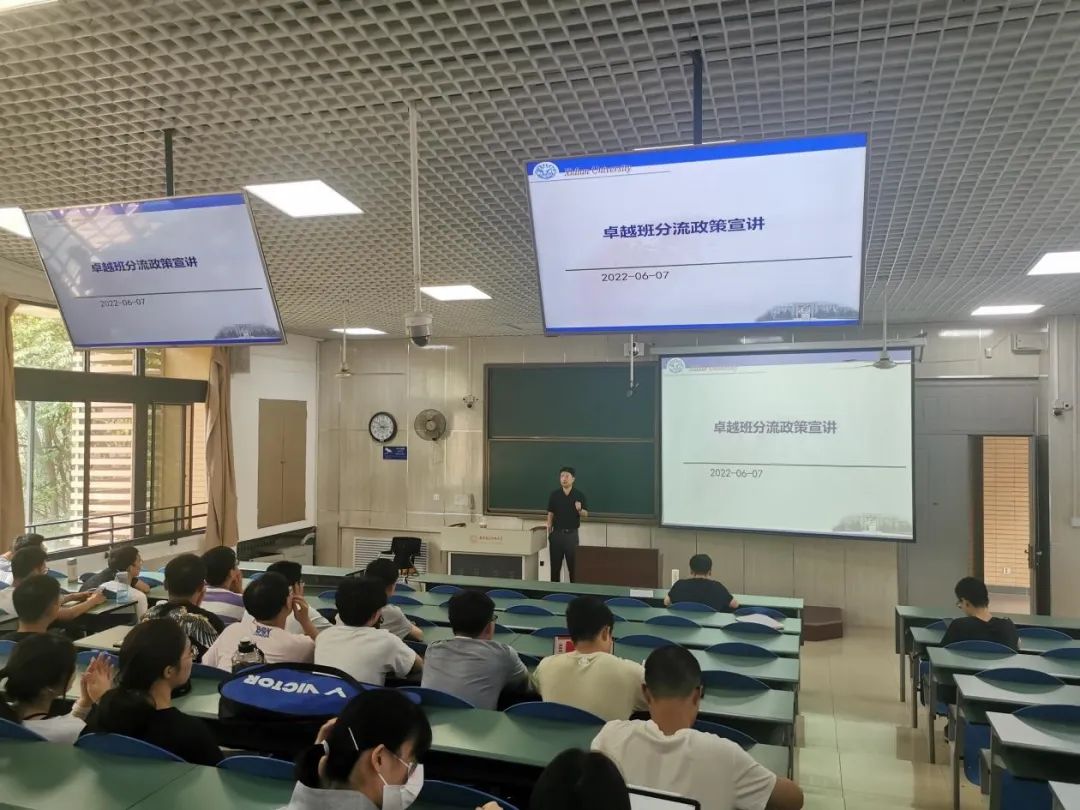 据悉,计科院高度重视本科生教育教学工作,于6月7日下午还在B楼303教室同时开展了2019、2020级卓越班专业分流政策宣讲,深入落实“六卓越一拔尖”计划2.0精神,加强教育教学的过程管理。卓越班负责教师杨鹏飞面向现行卓越班的新形势与新情况,针对保研政策、分流政策等同学们所关注的问题进行全方位解读,及时帮助学生了解学业和调整学习计划,保证卓越工程师人才培养工作的顺利进行。计科院落实立德树人根本任务,坚持不断优化卓越班培养模式,致力于以更优质的教育资源让同学受益,促进在良性的竞争中互助成长。