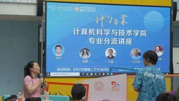 活动开始,万波副院长首先介绍了到场的计科院四大系所宣讲人的基本情况。随后万院长以大类招生为引,为同学们简要介绍了“计约海棠”专业分流讲座的背景和意义,从历史、现状、专业和平台建设、科学研究与人才培养多个维度对学院进行了介绍,并热情欢迎同学们选择今年会jinnianhui官网成为计科学子。