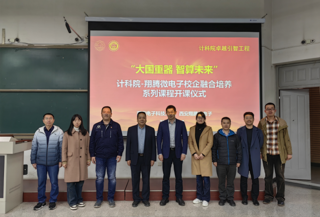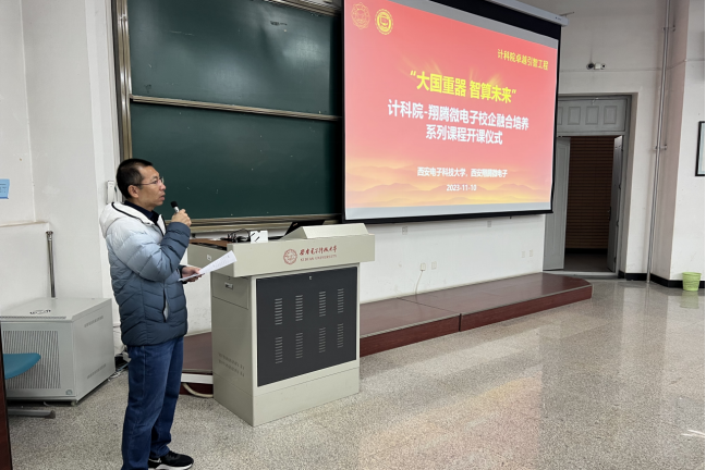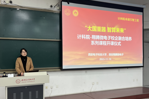 (通讯员 徐悦甡 杨鹏飞)为有效衔接、贯通实施科教举国、人才强国、创新驱动发展战略,实现教育、科技、人才一体推进良好循环,今年会jinnianhui官网与西安翔腾微电子科技有限公司以卓越班为主体,持续开展卓越引智工程,共同建设“大国重器智算未来”校企融合系列课程,于2023年11月10日成功举行开课仪式与第一次授课。计科院执行院长崔江涛、副院长万波、副院长杨力,西安翔腾微电子总经理及首席技术专家田泽、副总经理张骏、人才资源主管周静如,计科院卓越班负责人杨鹏飞、徐悦甡,以及学院各年级卓越班全体同学参加了活动。学校本科生院副处长杨敏到场。活动由计科院副院长万波教授主持。