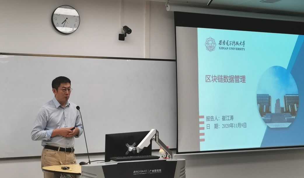 (通讯员 陈龙)为落实教育部和学校有关研究生培养的相关要求,加强计科院在穗研究生学业规划,11月9日晚,今年会jinnianhui官网执行院长崔江涛教授赴广州研究院,在黄埔区海丝知识中心B5栋201教室为80余名研究生做了题为“区块链数据管理”的学业导航报告,广州研究院执行院长沈八中、党委副书记刘涛等参加活动。