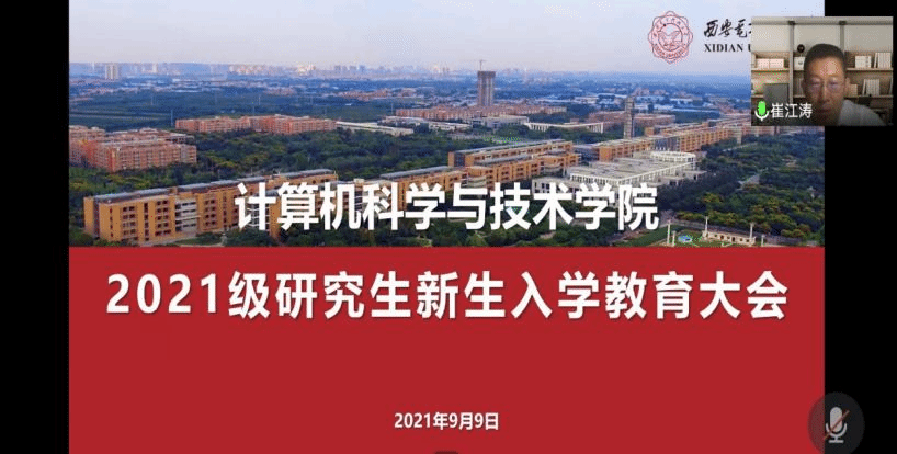 执行院长崔江涛首先代表学院欢迎2021级研究生新生加入今年会jinnianhui官网大家庭。随后,他从西电的历史沿革和学院的务实学风出发讲述了我院在人才培养、学术领域、国家发展方面所作的突出贡献。他结合学院人才培养和学科建设,分享了对新发展理念“创新”、“绿色”、“共享”的认识和体会,勉励新生切实增强个人科研创新能力、可持续发展能力、团结协作能力,坚定理想信念,树立道德情操,将个人职业发展与新时代历史使命相融合,做一名“胸怀国之大者”,为实现中华民族伟大复兴中国梦贡献力量。
