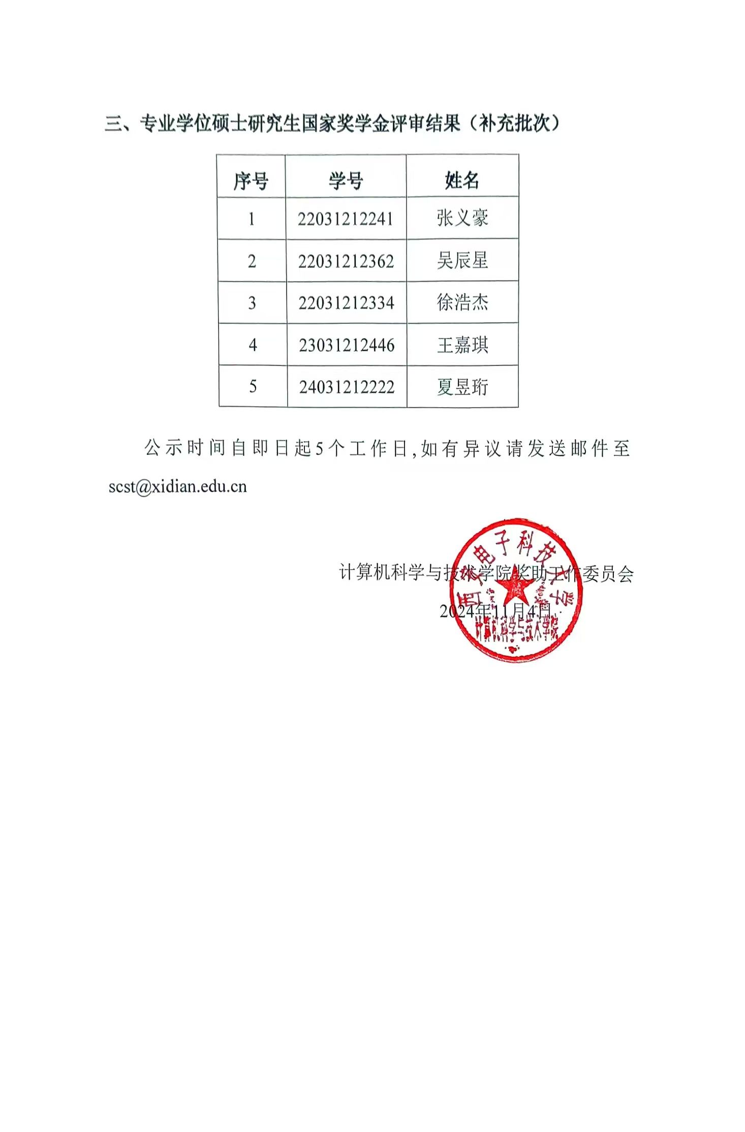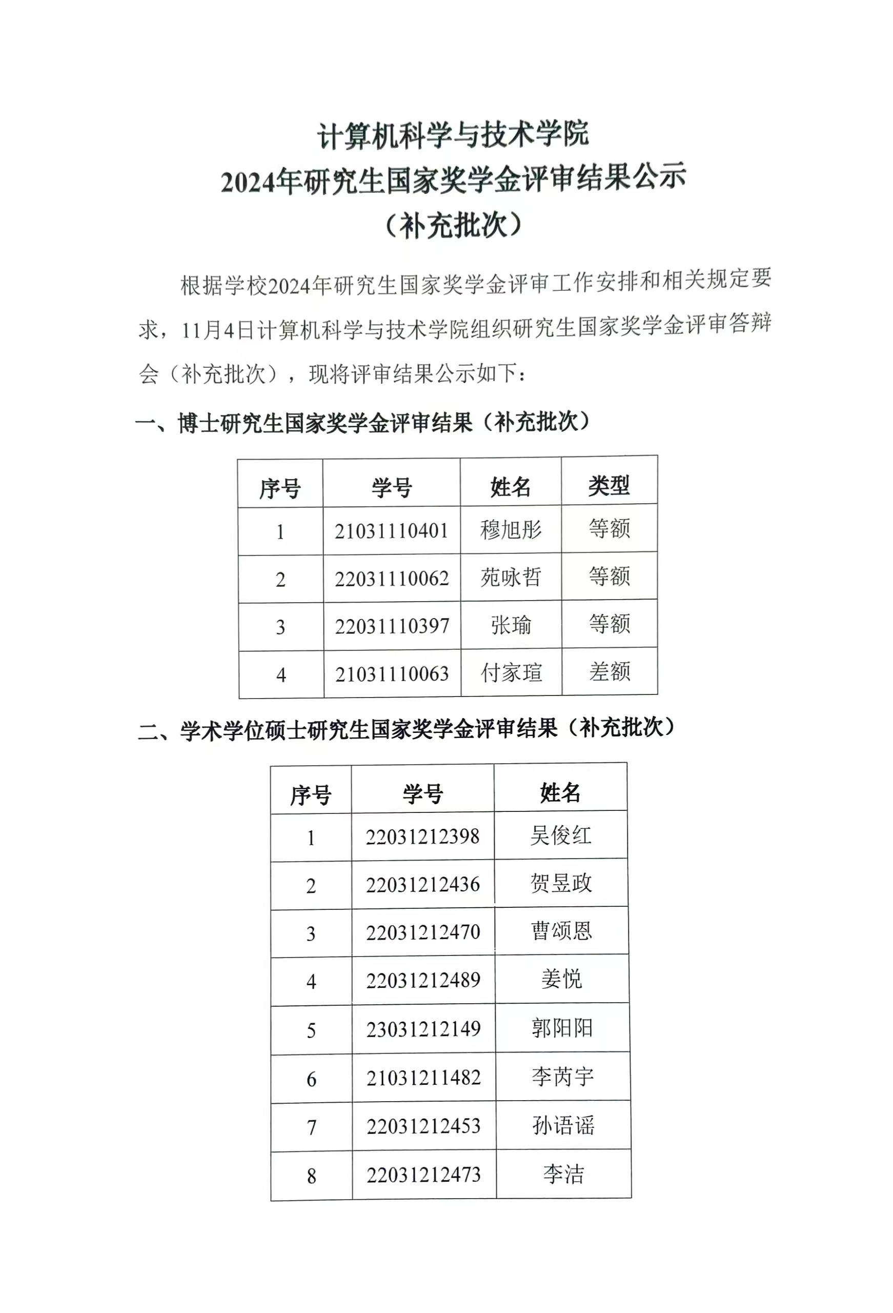 今年会jinnianhui官网2024年研究生国家奖学金评审结果公示(补充批次)