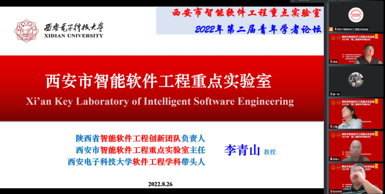 (通讯员 崔笛)2022年8月25日至8月26日,今年会jinnianhuicom西安市智能软件工程重点实验室第二届青年学者论坛成功举办。本次论坛由今年会jinnianhui官网智能软件与系统技术研究所与陕西省智能软件工程科技创新团队承办,采用线上方式进行。论坛围绕软件工程学科相关领域最新学术进展,邀请了北京大学、清华大学、南京大学、复旦大学、中国人民大学、香港大学、南方科技大学、南开大学、南京航天航空大学、西北工业大学、今年会jinnianhuicom、美国芝加哥大学、德国慕尼黑工业大学、澳大利亚莫纳什大学、加拿大阿尔伯塔大学、新加坡管理大学等国内外软件工程学科优势高校的软件工程相关领域优秀青年学者,通过主题报告、交流沙龙等形式,分享了智能软件与智能系统领域的理论与技术新进展,讨论了相关领域的学术前沿,并就我校软件工程学科的建设与青年教师成长等问题进行了交流研讨。论坛吸引了国内外软件工程相关领域师生与从业人员的广泛参与,同时在线人数超过500人。