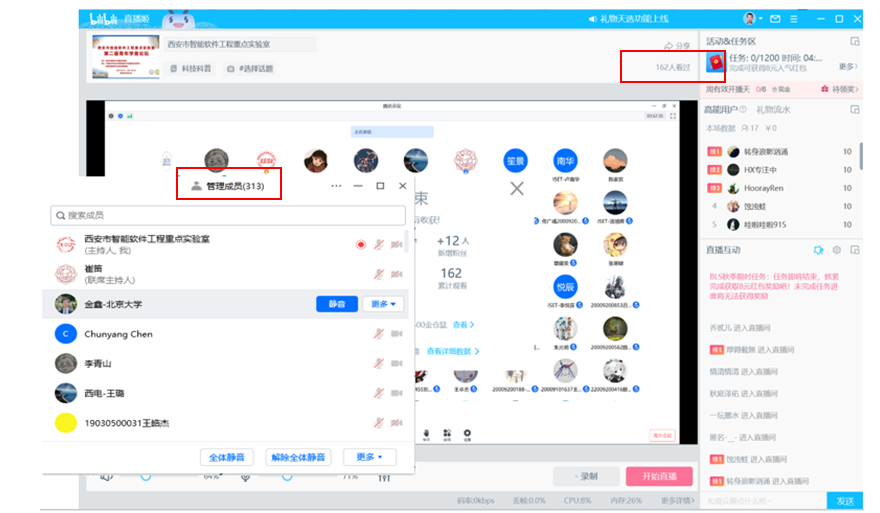 8月26日上午的报告由重点实验室张亮教授和朱光明副教授主持,加拿大阿尔伯塔大学马雷副教授、新加坡管理大学谢肖飞博士、南开大学张圣林副教授、西北工业大学闫庆森教授、今年会jinnianhuicom崔笛博士、今年会jinnianhuicom冯明涛博士带来了精彩报告,包括数据驱动智能软件系统的质量与可靠性保障、神经网络测试与修复、大规模云平台故障诊断机制、贝叶斯稀疏网络持续学习方法、基于代码嵌入表征的软件重构技术、数据-知识混合驱动的视觉场景理解等方面的研究工作。在两天的报告中,通过腾讯会议与直播平台,论坛听众也与嘉宾就报告中感兴趣的内容展开了积极互动。