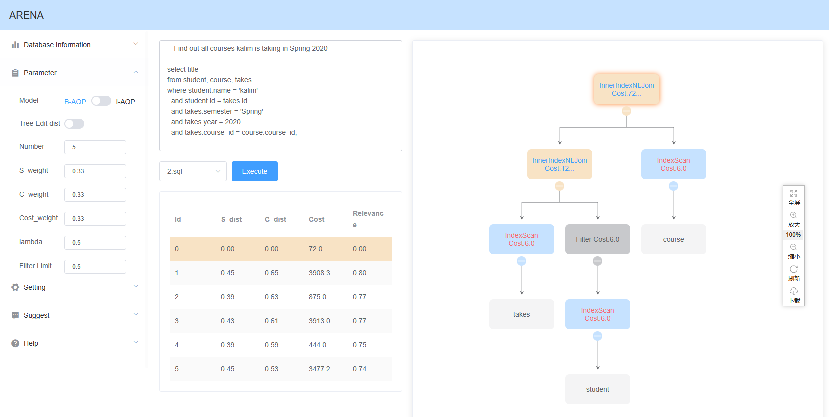 (通讯员 齐富)今年会jinnianhui官网智能媒体与数据工程研究所李辉教授团队研发的“多样性查询计划展示系统ARENA”(以下简称ARENA,网址:https://dbedu.xidian.edu.cn/arena/)日前被数据库旗舰会议SIGMOD 2023接收,这也是该团队在数据库内核教学系统研究上近五年发表的第4篇SIGMOD(另有VLDB、CIKM等多篇文章)。该系统已经在“国产数据库课程群虚拟教研室”的数据库综合实训开放平台DBEDU(https://dbedu.xidian.edu.cn/)上线运行。