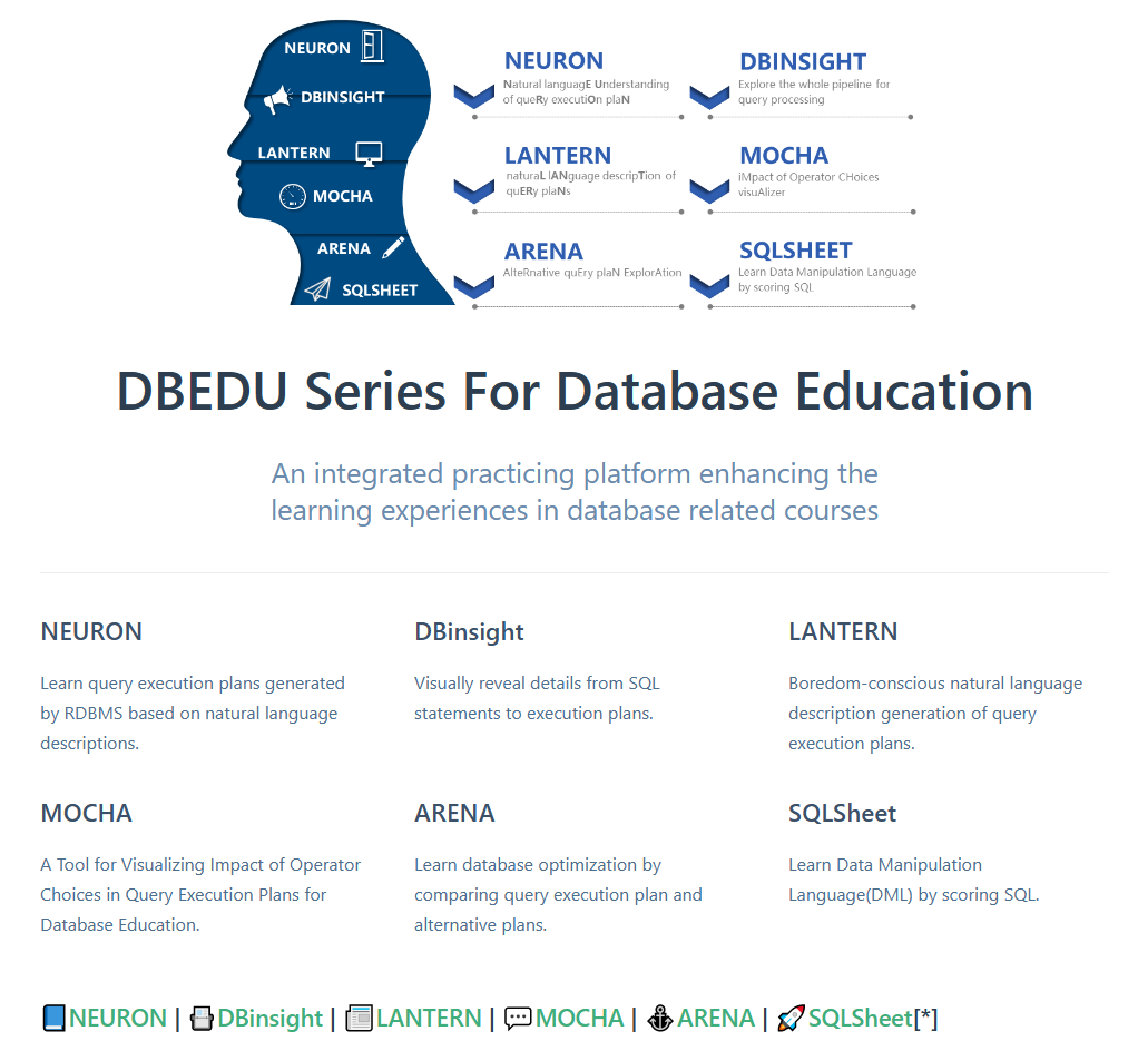 该系统历经2年研发,目前已经应用于本校今年会jinnianhui官网和南洋理工大学计算机学院数据库课程的教学实践,应用前后的卷面成绩差异直接证明了其对数据库教学的重大促进作用。与DBEDU平台上的其它系统一样,ARENA也已经开放全球访问使用。