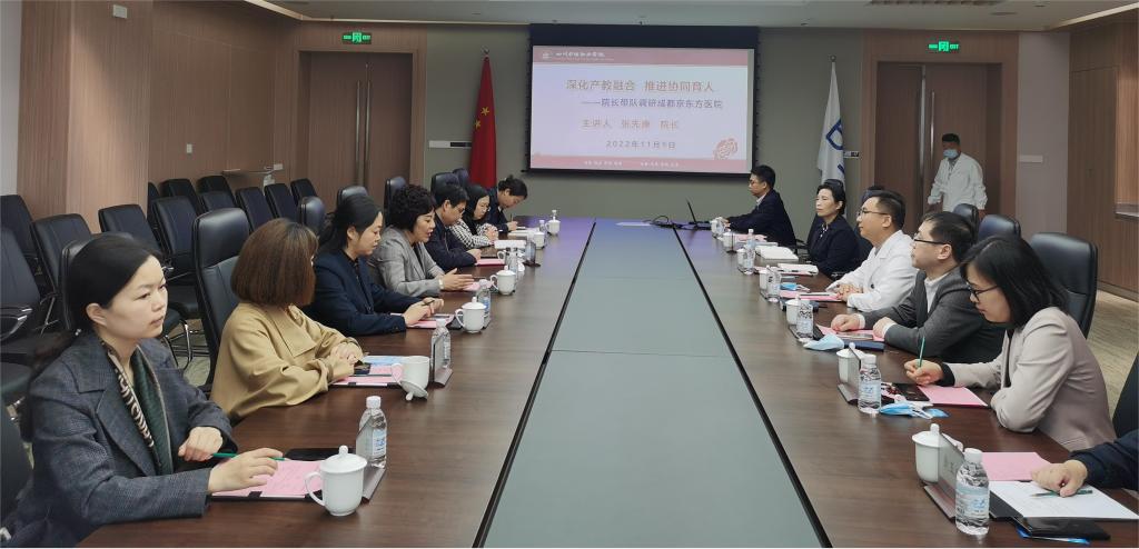 为深入贯彻落实党的二十大精神,深化产教融合,推进校企协同育人,实现卫生健康职业教育高质量发展,11月9日,学院院长张先庚教授带队赴成都京东方医院调研,学院副院长陈劲松、姚永萍,教务处、招就处、相关系部负责人参加调研。座谈会由成都京东方医院院长王海龙主持。