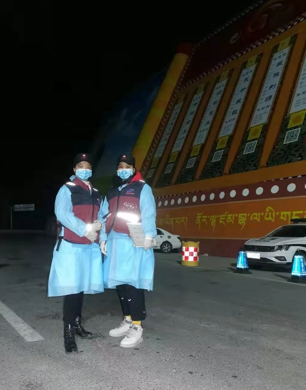 2012级“9+3”护理专业毕业生三灯卓玛晚上坚守执勤卡点