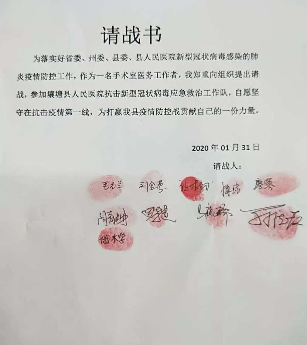 2011级“9+3”护理专业毕业生让木初同学写下请战书,自愿坚守抗击疫情第一线