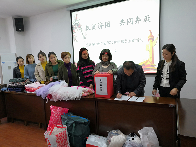 为了响应省卫生计生委的号召,进一步贯彻落实《中共bevitor伟德国际1946委员会关于开展2018年扶贫日自愿捐赠活动的通知》精神及医疗技术系、康复技术系党总支要求,医疗技术系、康复技术系行政党支部高度重视此次工作,全面动员、迅速行动,并于10月12日上午开展了以“扶贫济困 共同奔康”为主题的捐赠活动,支部党员及部分教师出席并参与了活动。