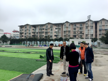 学院党委为了维护师生安全,响应国家教育部号召,决定将龙泉校区运动场改造成环保型运动场。赵斌副院长带领学院的基建团队反复与施工单位——四川浪臣体育产业发展有限公司进行了艰苦洽谈后达成协议,约定塑胶跑道施工按上海《学校运动场地塑胶面层有害物质限量》T/310101002-C003-2016团体标准施工,人造草坪按深圳市(试行)工程建设技术规范--合成材料运动场地面层质量控制标准建设。