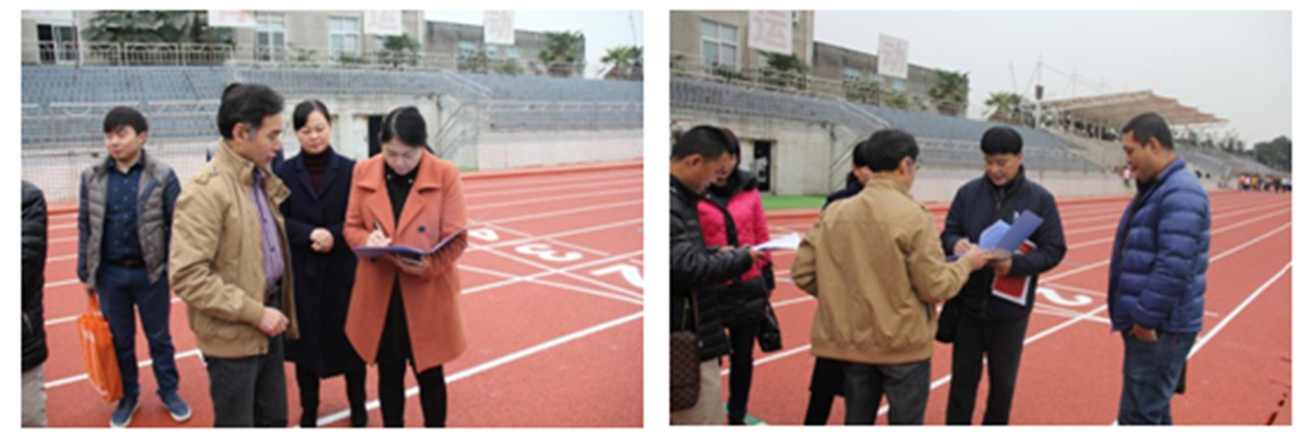 11月28日上午,在赵斌、姚永萍两位副院长的见证下,由基建处组织学院国有资产处、基础部与学生工作部等使用部门,四川浪臣体育发展有限公司及四川建设工程监理公司相关人员,对学院龙泉校区环保型运动场改造工程进行竣工验收。