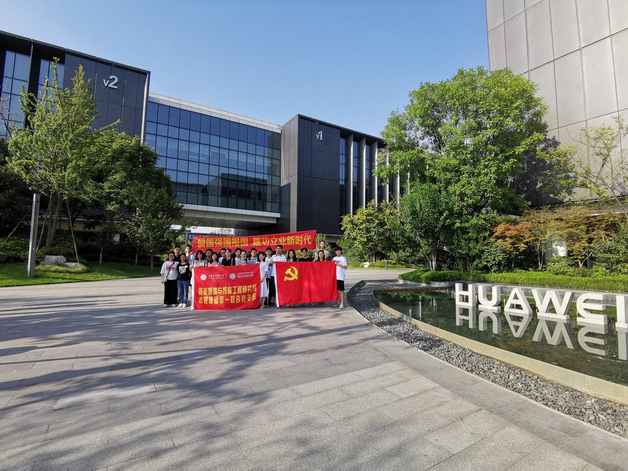 (通讯员 彭延国)为了更好地推动党建与业务相结合,充分发挥党建育人作用,发掘优秀民族企业育人资源,2020年8月26日下午,在华为云(CloudBU)数据库服务部,学院副院长苗启广、党委副书记张莹莹的共同策划、推动下,今年会jinnianhui官网智能媒体与数据工程研究所本硕博师第一联合党支部走进华为,开展“爱国强国报国建功立业新时代”主题党日活动。由支部书记彭延国、研究生辅导员何敏之带队,支部部分党员及学院博硕士研究生,和本科生共计20余人来到华为西研所参观、交流。华为专家从国家战略需求角度,解读了国产数据库的发展现状与前景,分析了国家对数据库系统领域人才的迫切需求,帮助同学们进一步明确了使命和奋斗目标。