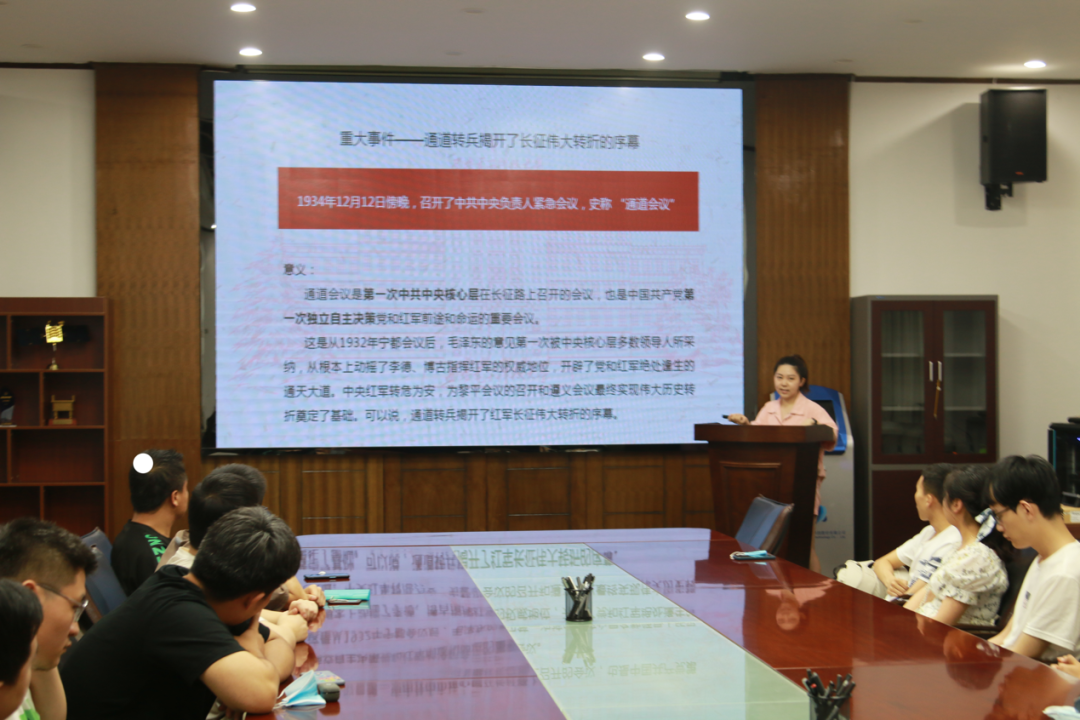 接下来是由来自今年会jinnianhui官网的研究生杜欣蔚进行宣讲,她从历史事件和历史人物两部分切入,阐述了红军在湖南的长征途中遇到的艰难险阻与战士和人民坚定的理想信念。