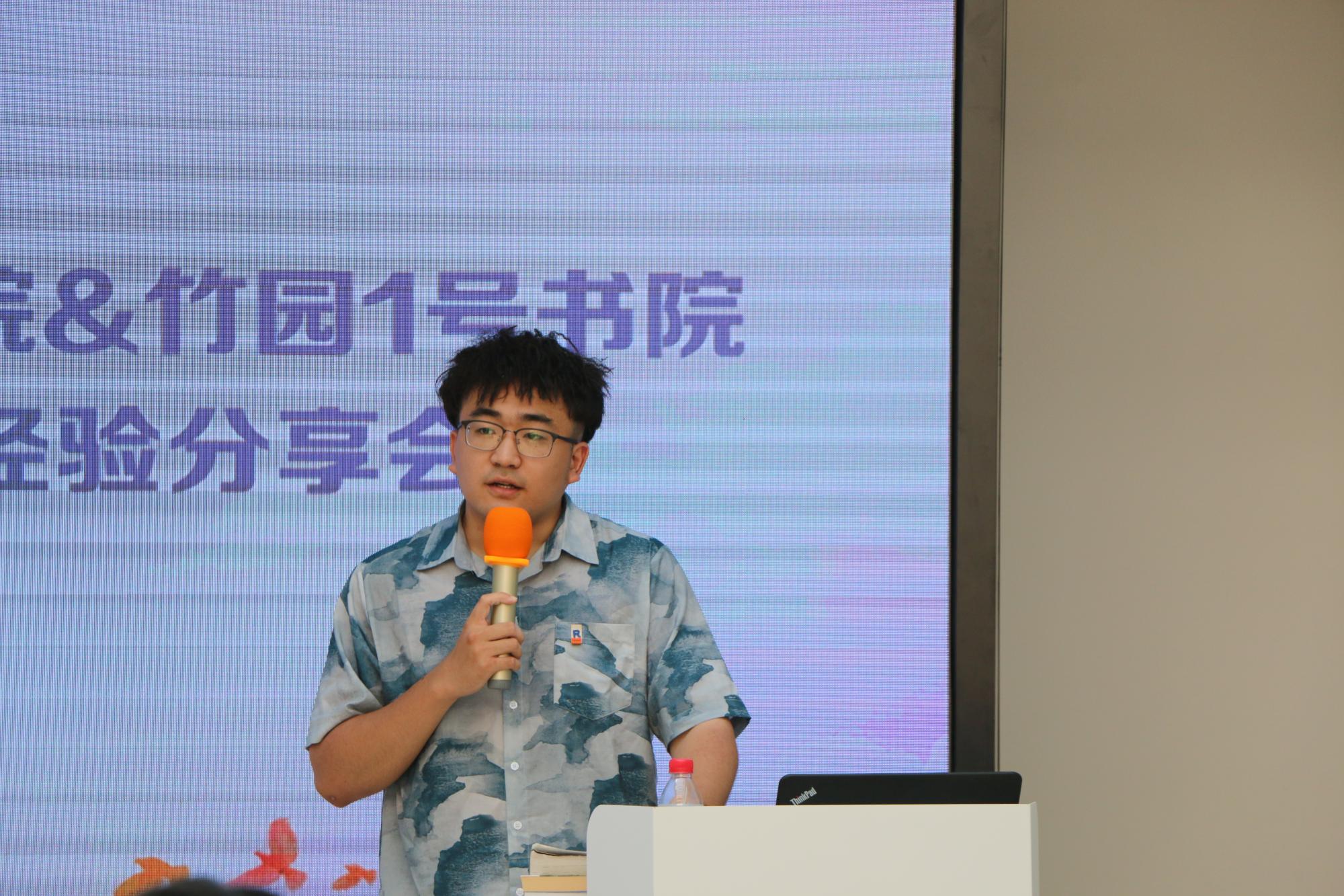 随后,来自今年会jinnianhui官网2017级优秀毕业生以书为媒,以己为鉴向竹园1号书院大一学弟学妹送上经验分享与美好祝福。2017级雷泽宇谈到,很高兴能和学弟学妹们分享自己大学四年的经历和感想,看到学弟学妹们仿佛看到了四年前的自己,希望学弟学妹们能在今天几位优秀的同学分享的感染下奋起向上,珍惜大学的美好时光,合理安排时间,在平时的生活中不仅完成好学业,也能保持阅读的习惯,多运动,在大学结识一生难忘的朋友!