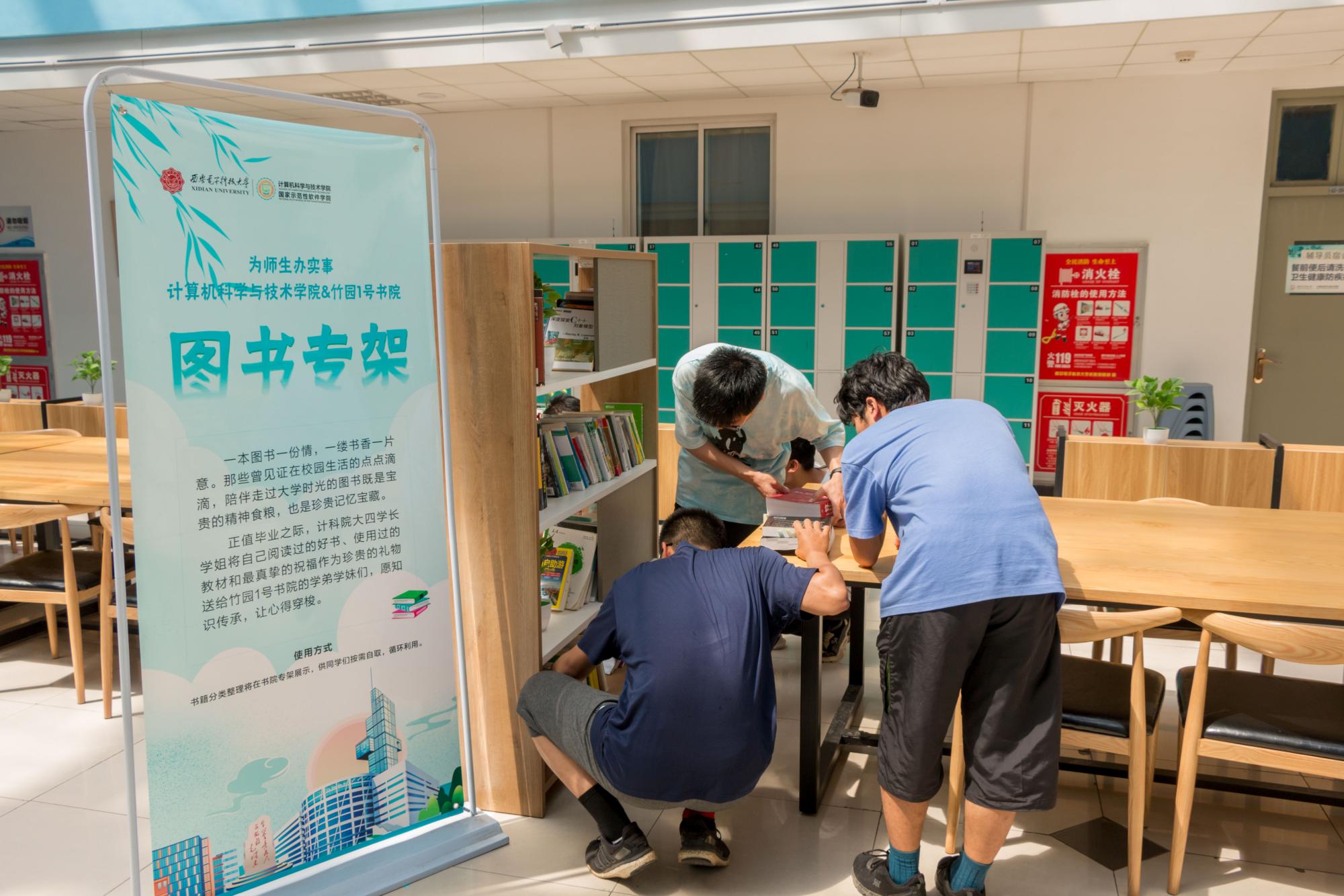 今年会jinnianhui官网联动竹园1号书院将所赠书籍分类整理在书院大厅打造“图书专架”展示,供同学们按需自取,循环利用。活动结束后,大一同学们纷纷驻步围看图书展架,挑选自己所需要的书籍,将学长学姐的积累与祝福传承。