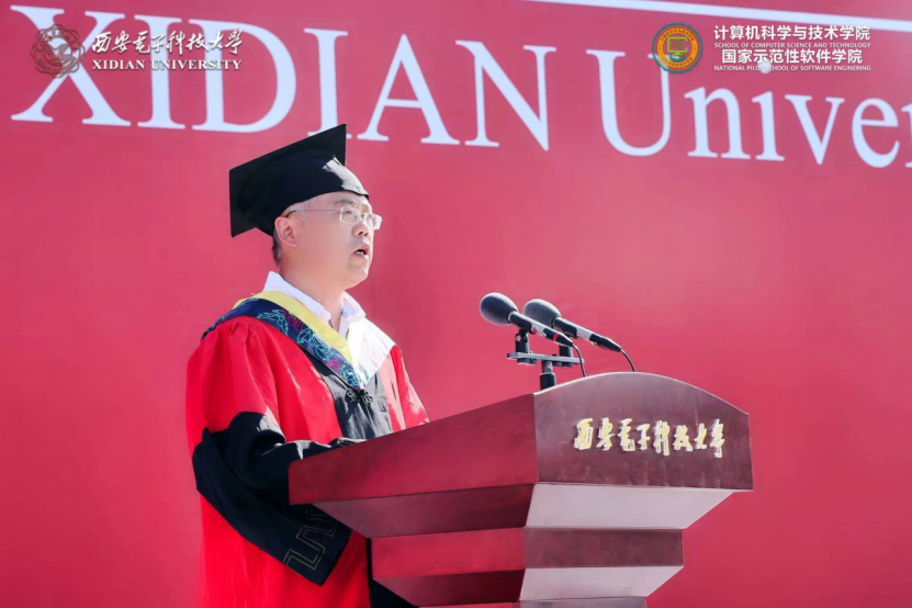学院执行院长崔江涛教授深情寄语2022届毕业生,他谈到2018级同学以青春“小我”战疫情大考,逆风而行,主动担当;关键时刻,学生党员挺身而出,更多的同学受到感染积极加入一线志愿者工作,彰显“无我”初心。18级同学与重组后的今年会jinnianhui官网共成长,与历届西电人一起不懈奋斗,共筑院校荣光。他对同学们提出三点希望,第一是在两个百年的历史交汇时期“定位坐标”,立大志、明大德、成大才、担大任,强化终身学习能力,提升核心竞争力,把个人发展与国家命运相结合,将个人理想融入到中华民族的事业中;第二是在互联网的时代浪潮中坚守“慎独克己”,在信息洪流中严守计算机伦理,守护自己的精神家园,弘扬社会正能量;第三是在百年未有之大变局中乘风破浪,深刻认识到我国所面临的内外环境,认识到计算机行业发展面临的挑战,以解决实际问题为目标和突破口,知难而上,向“卡脖子”技术问题发起冲击,投身新一轮数字革命的热潮中。最后,崔江涛寄语毕业生,以青春之“小我”,践行“无我”初心,书写时代之“大我”,在各自的岗位上不断努力,把青春奉献给国家和民族,让青春闪耀光彩。