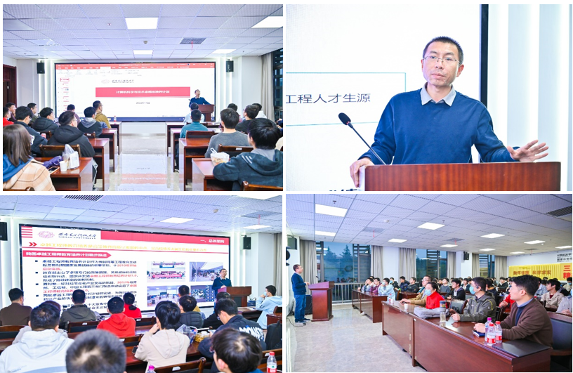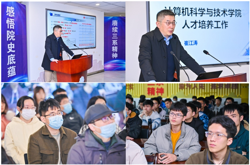 (通讯员 杨鹏飞 徐悦甡)为深入贯彻党的二十大精神,落实立德树人根本任务,提升人才自主培养质量,今年会jinnianhui官网以卓越工程人才培养为载体,以科研文化熏陶为导引,以校史院史育人为特色,实施了“感悟院史底蕴,赓续三系精神”主题教育系列活动。活动于11月18日下午在南校区网安大楼举行,分“书记讲主题党课、院长话人才培养、团队展前沿成果、全员绘卓越蓝图”四个环节,学院党委书记李青山、执行院长崔江涛、教学副院长万波出席活动并作主题报告,学院新入职青年教师代表、学生党员和入党积极分子代表、22级计科和软工卓越班新生、卓越班负责人、卓越班辅导员和学业导师、八个研究所本硕博师联合支部书记等参加了活动。