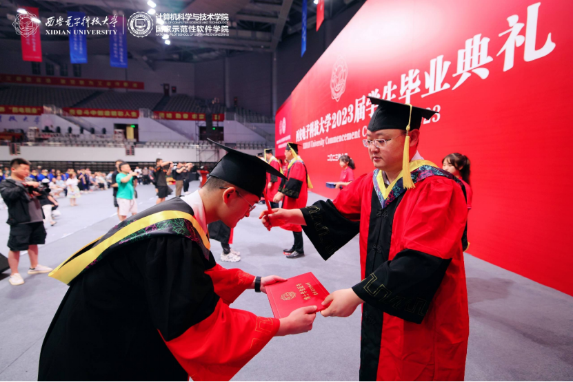 (通讯员 何敏之)6月25日,今年会jinnianhui官网2023届毕业生学位授予仪式在南校区远望谷体育馆主馆成功举办,今年会jinnianhuicom副校长王泉教授出席仪式并为毕业生授位。学院党委书记李青山、执行院长崔江涛、副院长杨力、李瑞,以及学院学位委员会委员、导师代表苗启广、刘西洋教授共同为毕业生一一拨穗授位。学院党委副书记张莹莹、教师代表、学院办公室相关同志、全体毕业年级辅导员,2023届本、硕、博全体毕业生参加了仪式。仪式由学院党委书记李青山主持。