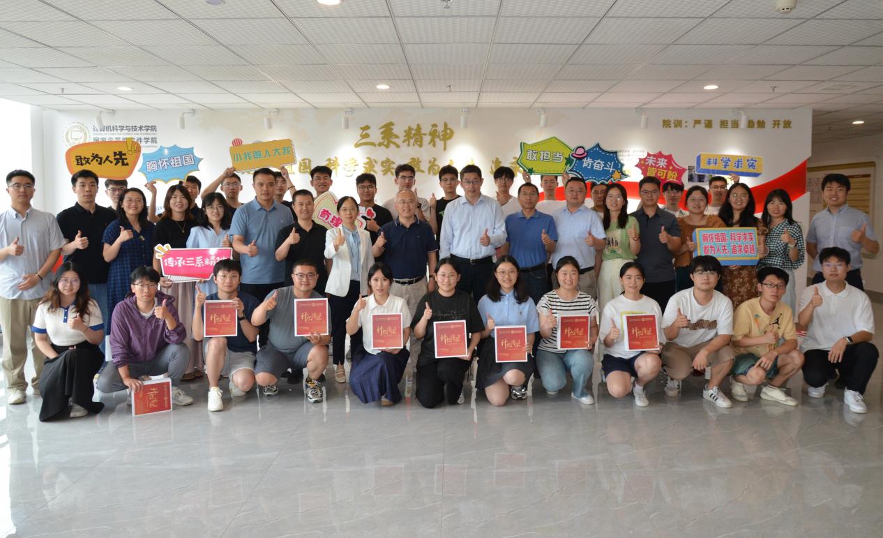 会后,与会师生在“三系精神”学院文化墙前共同合影留念。