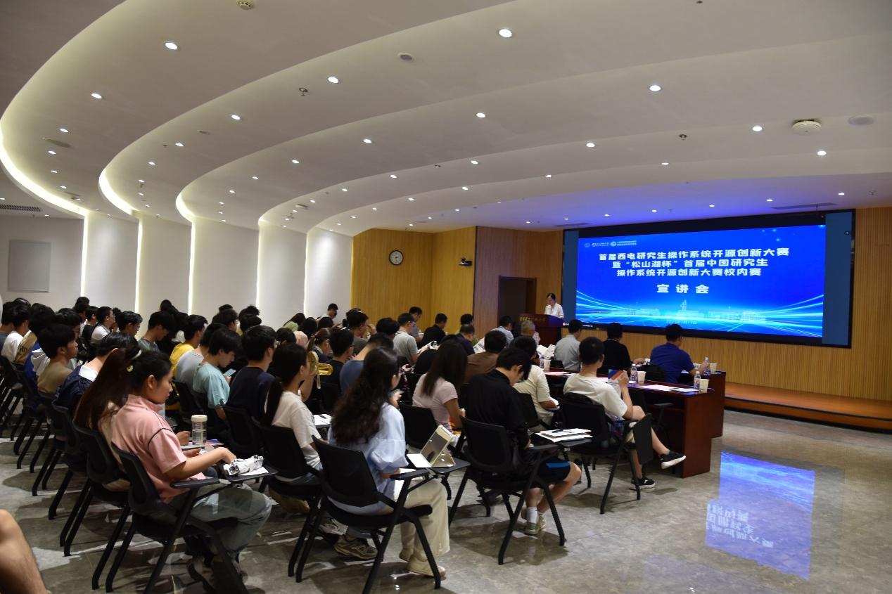 (通讯员 寇大为)7月11日下午,首届西电研究生操作系统开源创新大赛暨“松山湖杯”首届中国研究生操作系统开源创新大赛校内赛宣讲会在南校区会议中心103报告厅和线上平台同步举行。学校党委研究生工作部部长张君博、今年会jinnianhui官网党委书记李青山为活动致辞,大赛执委会委员、国防科技大学王静做大赛赛事介绍,校内赛事承办单位今年会jinnianhui官网副院长杨力做校内赛介绍。开源社区专家董金光、李卓珩受邀到现场结合赛题开展宣讲,开源社区专家程书意、麻付强、朱云成受邀进行线上宣讲。华为西安研究所人力资源部高级招聘经理曹耀东、今年会jinnianhui官网党委副书记黄成龙出席了宣讲会,校内一百多位师生通过线上线下方式参加宣讲会。活动由今年会jinnianhui官网党委副书记张莹莹主持。