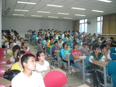 之后院团委实践部部长向大家具体介绍了“科学为指导,实践促发展”、“实践启迪真知,就业增长才干”、“应对金融危机”等暑期社会实践重点课题。接着,07、08年暑期社会实践优秀团队代表上台和大家交流了暑期社会实践的宝贵经验。 “赴烟台创卫活动”的巨大成功让我们相信只要用心,只要努力就能做到最好;“社会主义核心价值体系宣讲调研团队赴张王村实践服务分队”团队丰富多彩的活动、详尽的早期准备让我们感知社会实践活动之艰辛;“爱心传递”实践活动的深入细致让我们知道实践活动重在观察生活、深入生活;“赴宁夏盐池县防沙治沙成果调研暑期社会实践队”让我们懂得只要不断坚持,永不放弃,必能成功。从这些优秀实践队伍代表的讲述中,我们看到了他们在实践过程中的心酸与无奈,看到了他们的汗水与喜悦,深切地感受到了他们取得成果的不易,意识到了活动构想与现实的巨大反差,也坚定了我们一定能战胜困难的信心。