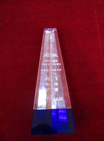 相飞、宁文博和朱伟同学不但获陕西一等奖及第一名——Altera杯,而且还一举夺得全国二等奖,该队指导老师郭万有教授获得“Altera卓越导师奖”,他们的作品“实时视频处理机顶盒”针对模拟电视与数字电视不兼容的问题提出了一种新的解决方案,该方案将FPGA信号处理技术和NiosII多核处理器技术相结合,实现了视频转换、图像显示、音乐播放和菜单显示等功能,具有成本低廉、可靠性高、稳定性好、实时性强、易于升级等特点,充分体现了Nios处理器的优势,赢得了一致好评。