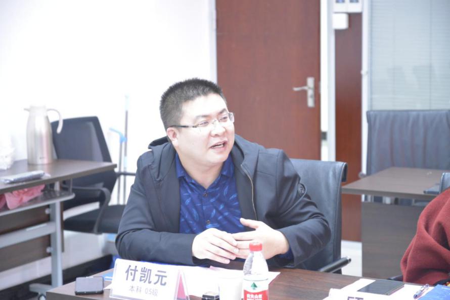 本科05级院友付凯元介绍了所在年级院友工作及地域分布情况,并谈到自己曾经作为学院工作人员,见证了学院的成长,希望通过联络大使这个角色,将院友更加紧密联系起来,整合资源建立深度合作。