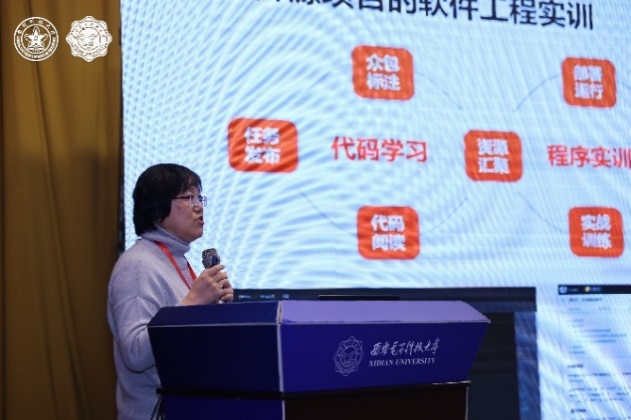 金芝围绕“软件需求工程研究与实践”,系统性地介绍了需求工程教学的主要内容,还分享了如何选择以及结合不同特征的案例展示方法。李宣东带来了题为“软件工程专业教育问题的若干思考”的报告,从若干不同的视角探讨了软件工程专业教育的本质问题。毛新军的关注点在于“升级软件工程课程教学”,介绍了如何通过借鉴当前软件工程的先进方法,以形成软件工程课程教学的生态。刘强讨论了“面向新工科的软件工程实训体系与平台建设”,结合国家级新工科研究与实践项目“面向新工科的软件工程实训体系与平台建设”的研究和实践,介绍了能力模型、实训体系、实践平台等三个方面的工作成果。宋胜利带来了“产教融合培养特色化软件人才的思考”,重点介绍了如何通过搭建校企协同创新育人平台,实现校企共建师资队伍、特色课程、特色教材和各类实践教学资源,以满足新时代国家发展需要的特色化软件人才。王强探讨了“产业需求与职业能力驱动的软件人才实践能力创新训练模式”,介绍了依托职业能力分析大数据服务平台,实现全过程贯彻专业工程能力、职业素养能力和创新创业能力的培养。