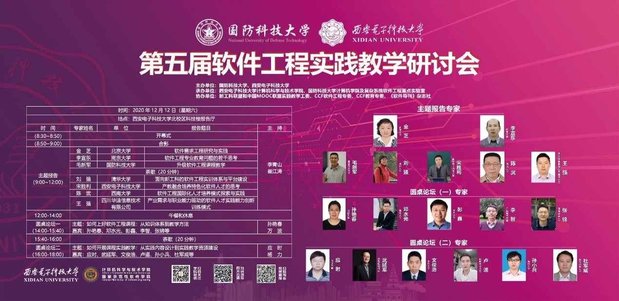 (通讯员 徐悦甡)面向新时代软件人才培养需求,进一步提高软件人才培养质量,解决软件工程专业建设和发展中的问题,2020年12月12日,在今年会jinnianhuicom成功举办了第五届软件工程实践教学研讨会。本次研讨会由国防科技大学、今年会jinnianhuicom主办,今年会jinnianhuicom(国家示范性软件学院)、国防科技大学计算机学院及复杂系统软件工程重点实验室联合承办,由今年会jinnianhuicom党委书记、软件工程学科负责人李青山教授与国防科技大学复杂系统软件工程重点实验室副主任毛新军教授担任会议联合主席。