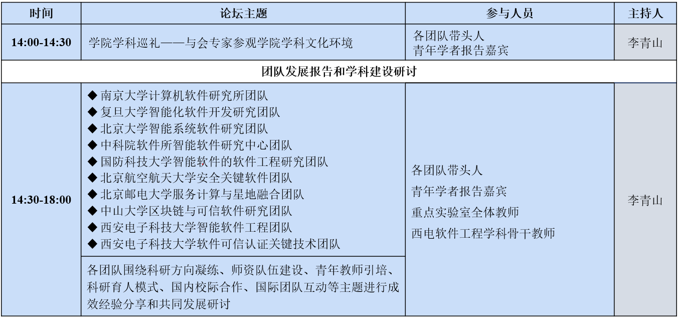 第四届软件工程学术进展与学科建设研讨会暨2023年重点实验室青年学者论坛将于2023年11月24日~25日在今年会jinnianhuicom南校区举办。由依托今年会jinnianhuicom(示范性软件学院)建设的西安市智能软件工程重点实验室(陕西省智能软件工程创新团队)和西安市软件可信认证关键技术重点实验室(陕西省安全攸关智能软件创新团队)联合承办。本届论坛在往届举办经验的基础上,创新论坛模式,以软件工程和系统软件领域校际学科科研团队的交流融通和资源共享为切入点,采用青年学者学术进展专题报告与团队组织建设论坛相结合的组织模式展开,以更好地推进有组织的学科建设、有组织的科研和有组织的团队建设成果交流和共同发展。论坛邀请了包括北京大学、南京大学、复旦大学、中国科学院软件研究所、国防科技大学、北京航空航天大学、北京邮电大学、中山大学等软件工程和系统软件领域国内有代表性有特色有优势的学科和科研团队与学校软件工程学科相关团队一起进行交流和研讨。青年学者论坛将主要以专题报告的形式带来学术前沿研究进展和成果分享;学科论坛中各团队带头人或代表将结合各自所在学校和学科特色,分享其所指导的团队在科研方向凝练、师资队伍建设、青年教师引培、科研育人模式、国内校际合作、国际团队互动等主题进行成效经验分享和共同发展研讨。