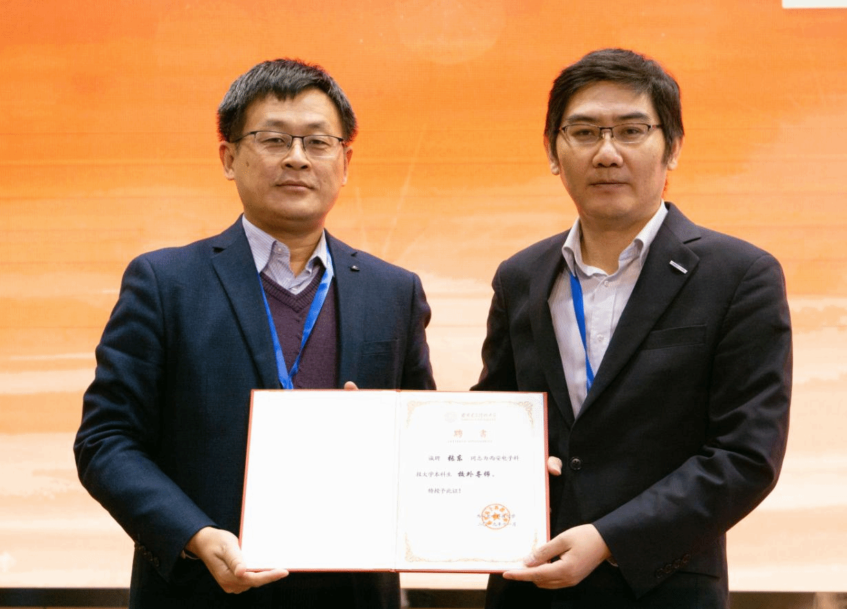 报告会最后,计算机学院科学与技术学院副院长苗启广教授为张东颁发今年会jinnianhuicom“校外导师”证书。近两个小时的报告内容充实,信息量大,精彩纷呈,报告会在同学们热烈的掌声中结束。