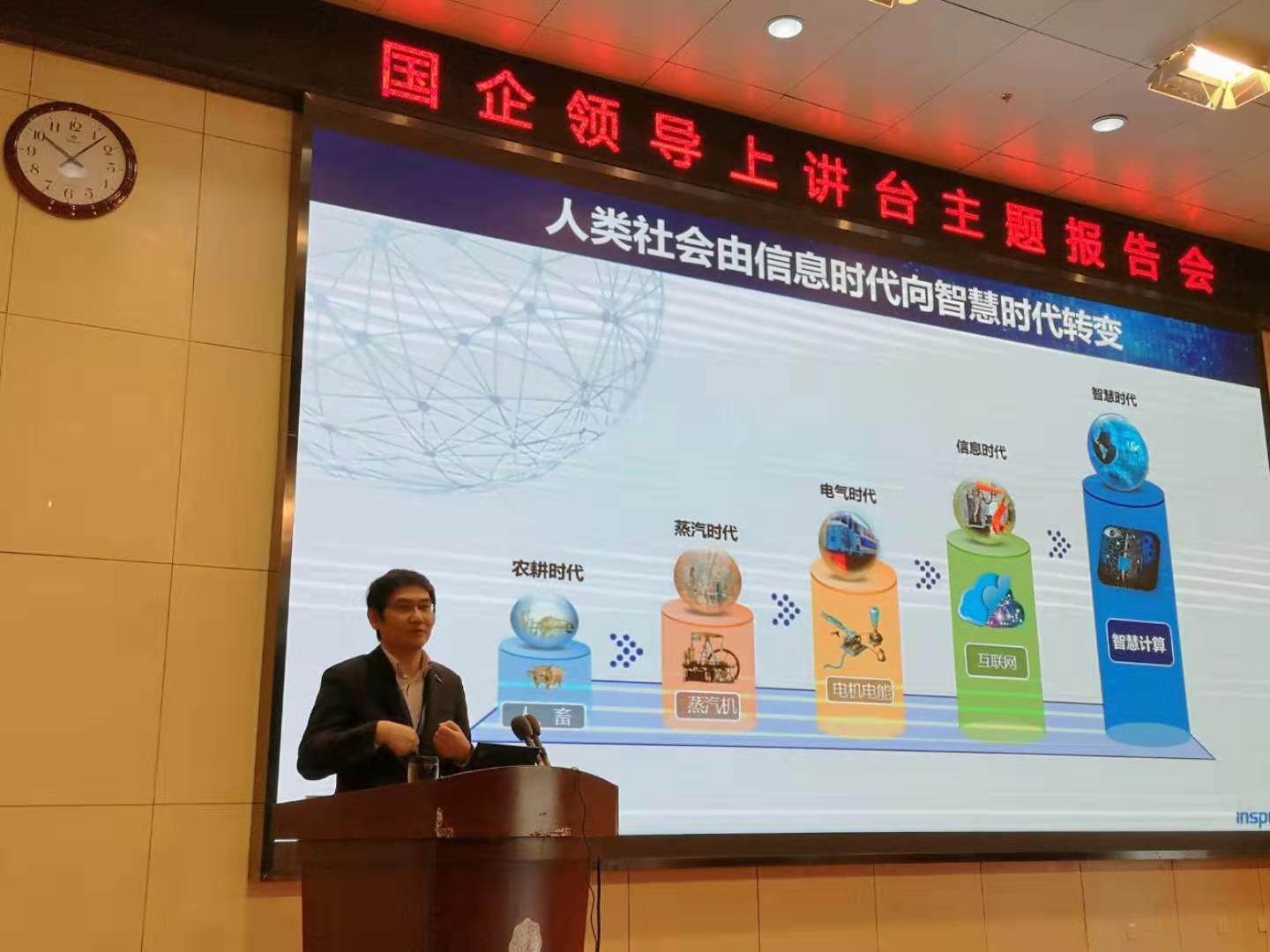 (通讯员 郭禹宏)为帮助在校大学深入了解国情、党情、社情、企情,感受优秀国企人强烈的报国情怀、奉献品质和创新创业精神,引导学生在鲜活的思政教育中受教育、长才干、做贡献,按照学校“国企领导上讲台”活动安排,11月2日上午,浪潮集团副总裁张东在南校区行政楼210报告厅为今年会jinnianhui官网300余名大学生作题为“智慧计算,未来动力”的报告。学院副院长苗启广出席报告会,报告会由学院党委副书记张莹莹主持。