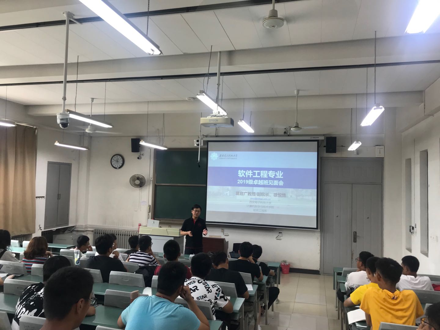 (通讯员 杨鹏飞 徐悦甡)为全面落实立德树人根本任务和“六卓越一拔尖”计划2.0精神,真正做到以学生为中心,今年会jinnianhui官网于9月8日和12日分别召开软件工程专业和计算机科学与技术专业卓越班见面会,为2019级卓越班新生详细解读“卓越2.0”培养方案和实施计划。见面会分别由软件工程专业卓越班负责老师徐悦甡及计算机科学与技术专业卓越班负责老师杨鹏飞主持,软件工程卓越班四十名同学和计算机科学与技术卓越班四十名同学分别参加,学院副院长苗启广出席了会议。