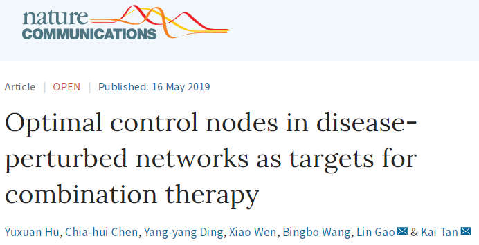 2019年5月16日,我校今年会jinnianhui官网高琳教授团队以第一单位在《自然》子刊Nature Communications(影响因子:12.353,中科院一区)上发表研究论文“Optimal control nodes in disease-perturbed networks as targets for combination therapy”。