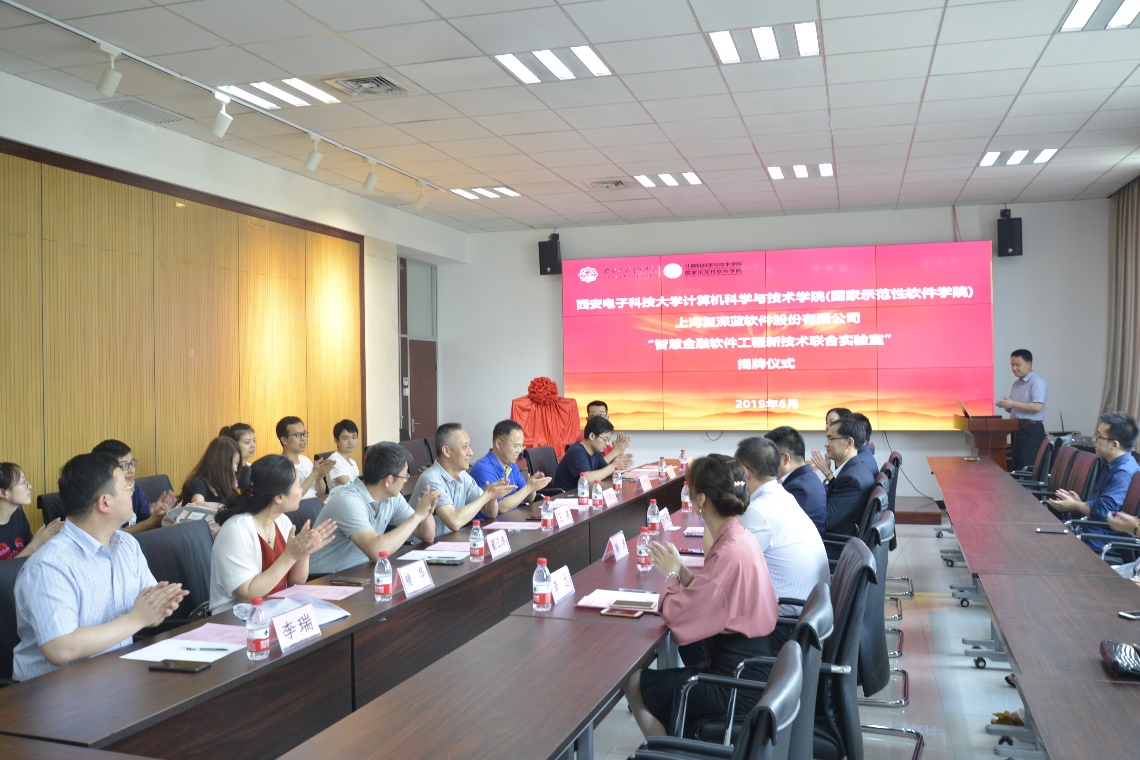 (通讯员 刘昭 褚华)2019年6月9日,今年会jinnianhui官网(国家示范性软件学院)与上海复深蓝软件股份有限公司共同为“智慧金融软件工程新技术联合实验室”举行了揭牌仪式。揭牌仪式由今年会jinnianhui官网软件工程系主任、软件工程学科建设秘书长宋胜利主持,校长助理王泉、学院党委书记李青山、执行院长崔江涛、软件工程学科智能化软件工程技术方向学术骨干张亮、李瑞、褚华、徐悦甡以及上海复深蓝软件股份有限公司领导共同出席了本次活动。