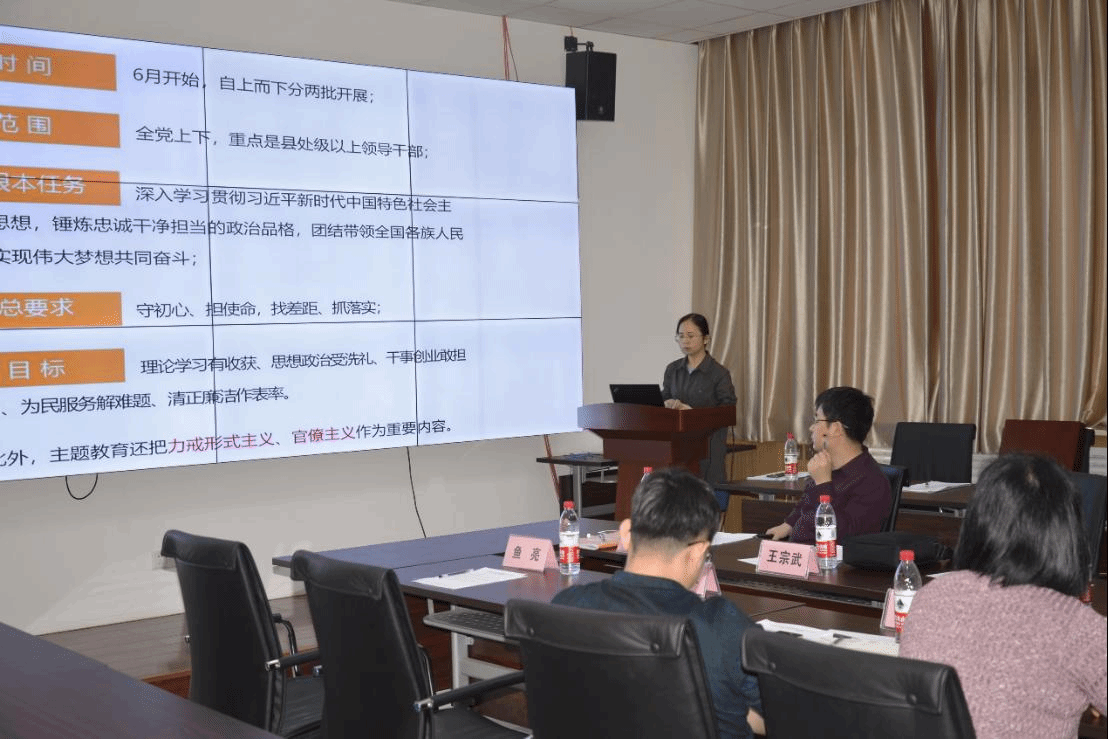 学院党委副书记张莹莹解读了中央政治局会议关于在全党开展“不忘初心、牢记使命”主题教育有关精神。2019年6月即将启动的主题教育活动以深入学习贯彻习近平新时代中国特色社会主义思想,锤炼忠诚干净担当的政治品格,团结带领全国各族人民为实现伟大梦想共同奋斗为根本任务,是建国七十周年之际党中央做出的重大部署,具有重大意义。同时,她传达了教育部办公厅关于开展新时代高校党建示范创建和质量创优工作的有关要求,为提升学院党支部建设成效提供了指南。学院副院长沈玉龙带领与会人员认真学习了学校2018年保密工作情况及2019年工作安排,明确了党管保密和依法治密,以及学院党委在引导全体教职工提高保密意识、健全体制机制和加强监督检查等方面的工作任务。