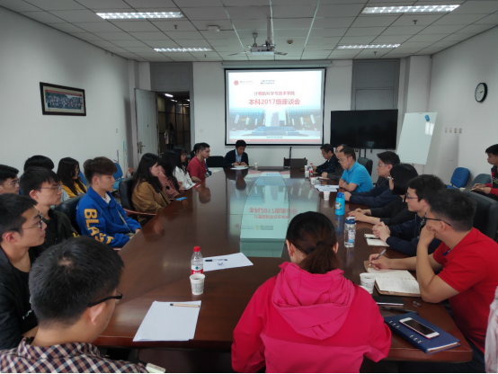 随后,45名学生代表一一发言,现场气氛热烈。本科2017级软件工程专业张熙同学建议增加后期暑期实践基地,实践成果会更丰富。本科2017级计算机科学与技术专业张金涛同学从转专业学生的角度谈到,希望能增加转专业培训以更快适应新学院。与会学生代表还就思想政治教育、教学教务、竞赛实践、教育信息化、师生互动及后勤保障等方面谈感受、指问题,提建议。班主任们则普遍反映与学生沟通交流不够,未充分发挥对学生的心理关怀与学习指导作用。