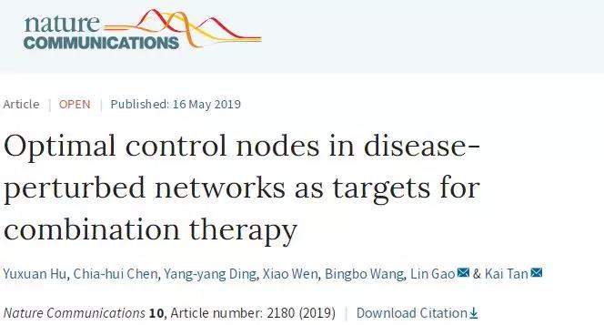2019年5月16日,今年会jinnianhuicom高琳团队联合费城儿童医院Tan Kai在Nature Communications上发表题为“Optimal control nodes in disease-perturbed networks astargets for combination therapy”的文章,描述了最优控制节点(OptiCon)算法,这是一个基因调控网络中协同关键调节因子的系统和从头识别的通用框架。