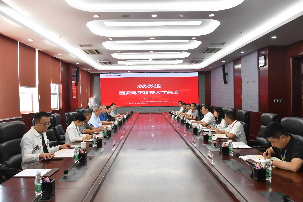 6日下午,郭俊一行来到中电十所,与十所党委书记汤兴华等领导、专家进行座谈交流。汤兴华对郭俊书记一行表示热烈欢迎,他指出,双方有着深厚的历史渊源,西电校友是中电十所的一支重要力量,多年来为十所的发展作出了重要贡献,也欢迎更多西电优秀学子来所工作。十所人力资源部副主任冉志强从历史沿革、主责主业、人才发展体系等方面做了简要介绍,特别介绍了与西电的科研合作、西电校友在十所的发展和贡献等情况。