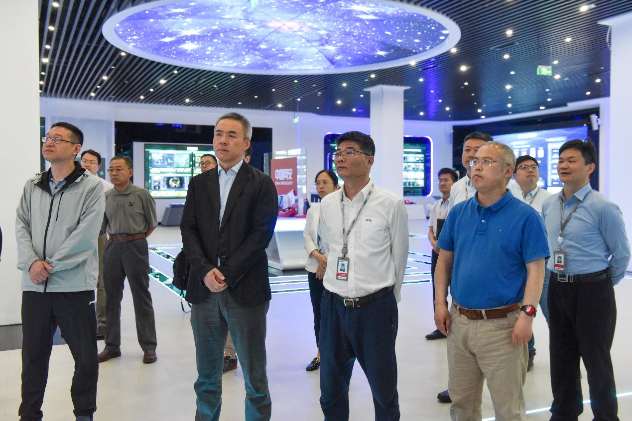 在汤兴华等的陪同下,郭俊一行参观了“共和国长子”中电十所展厅。