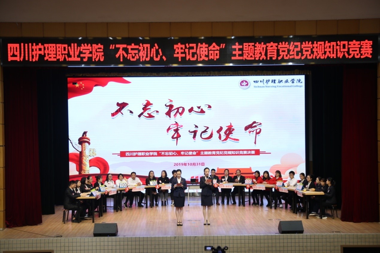 2019年10月31日,学院在成都校区学术报告厅开展了“不忘初心、牢记使命”主题教育党纪党规知识竞赛决赛。学院领导、中层干部、党总支及支部书记、全体党员及入党积极分子共200余人参加活动。