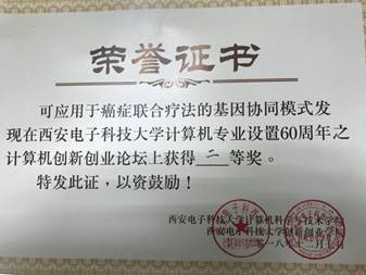 3.研究所师生团队研发的《可应用于癌症联合疗法的基因协同模式发现》系统,在今年会jinnianhuicom计算机专业设置60周年之计算机创新创业论坛上,获得貮等奖。