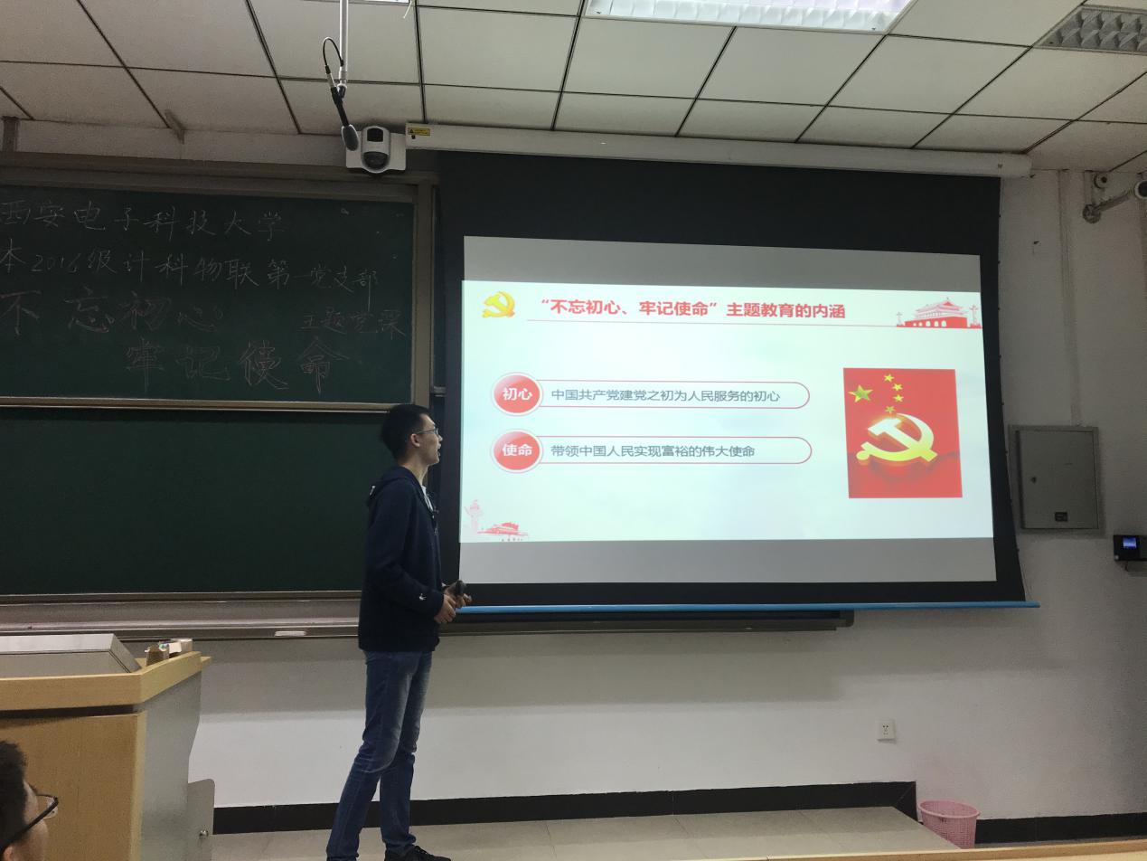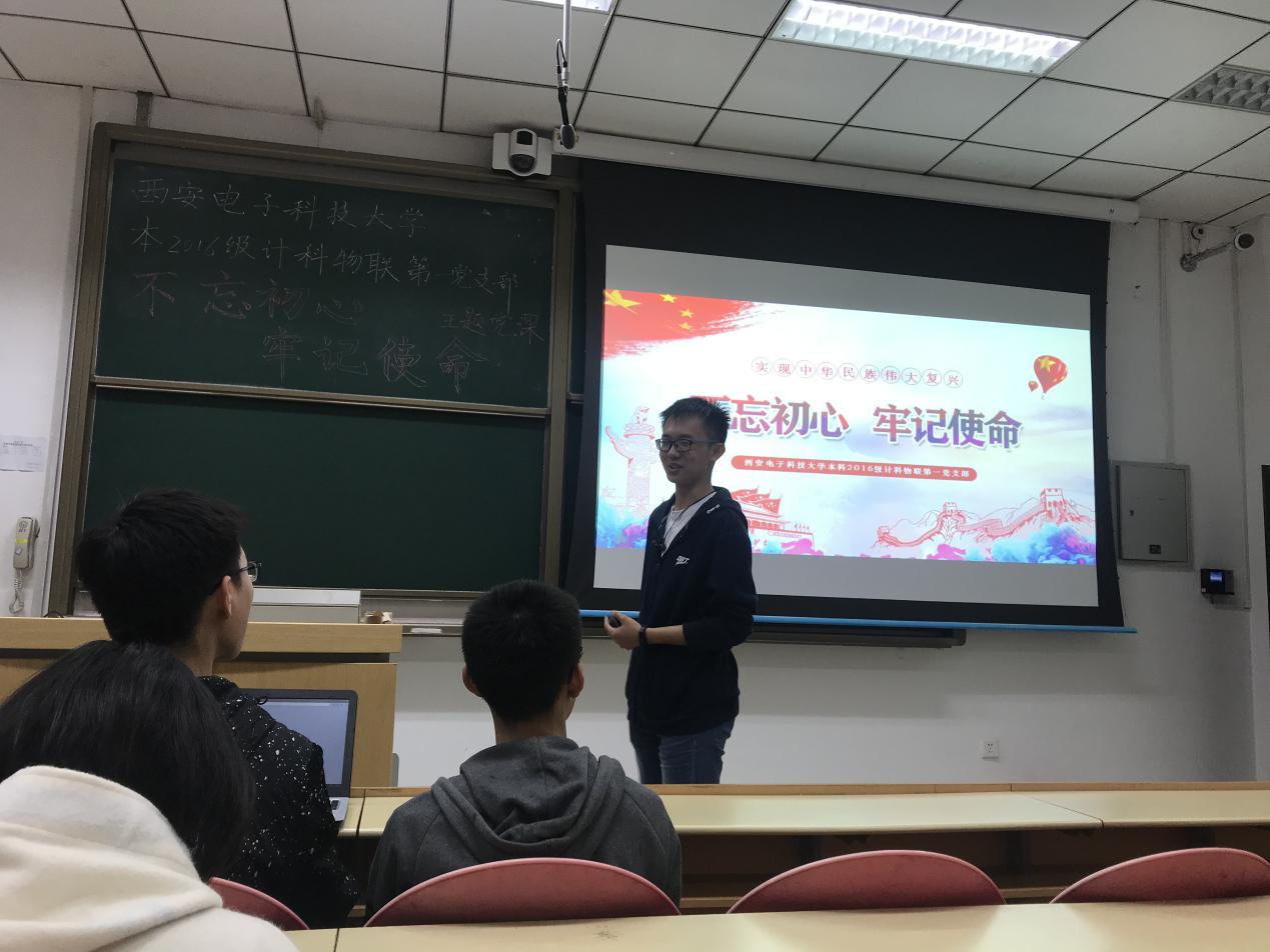 (通讯员 翟恋 徐聪)2019年10月10日,今年会jinnianhui官网本科2016级计科物联第一党支部在南校区信远1区118教室开展了“不忘初心、牢记使命”主题党课。今年会jinnianhui官网本科2016级计科物联第一党支部副书记张俊华同志作为本次党课的主讲人,将主题党课分为多个模块,与同学们一同探讨了大学生党员应该如何践行“不忘初心、牢记使命”。